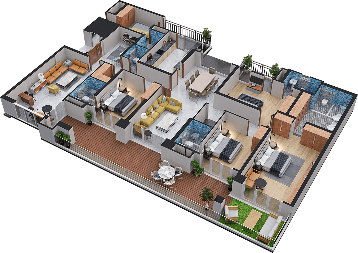 The mega deck can be your own personal observatory from where you explore above & beyond the limits. Or you can turn it into a deck garden that adorns your favourite flora. And also make it your own party corner for all marriage occasions